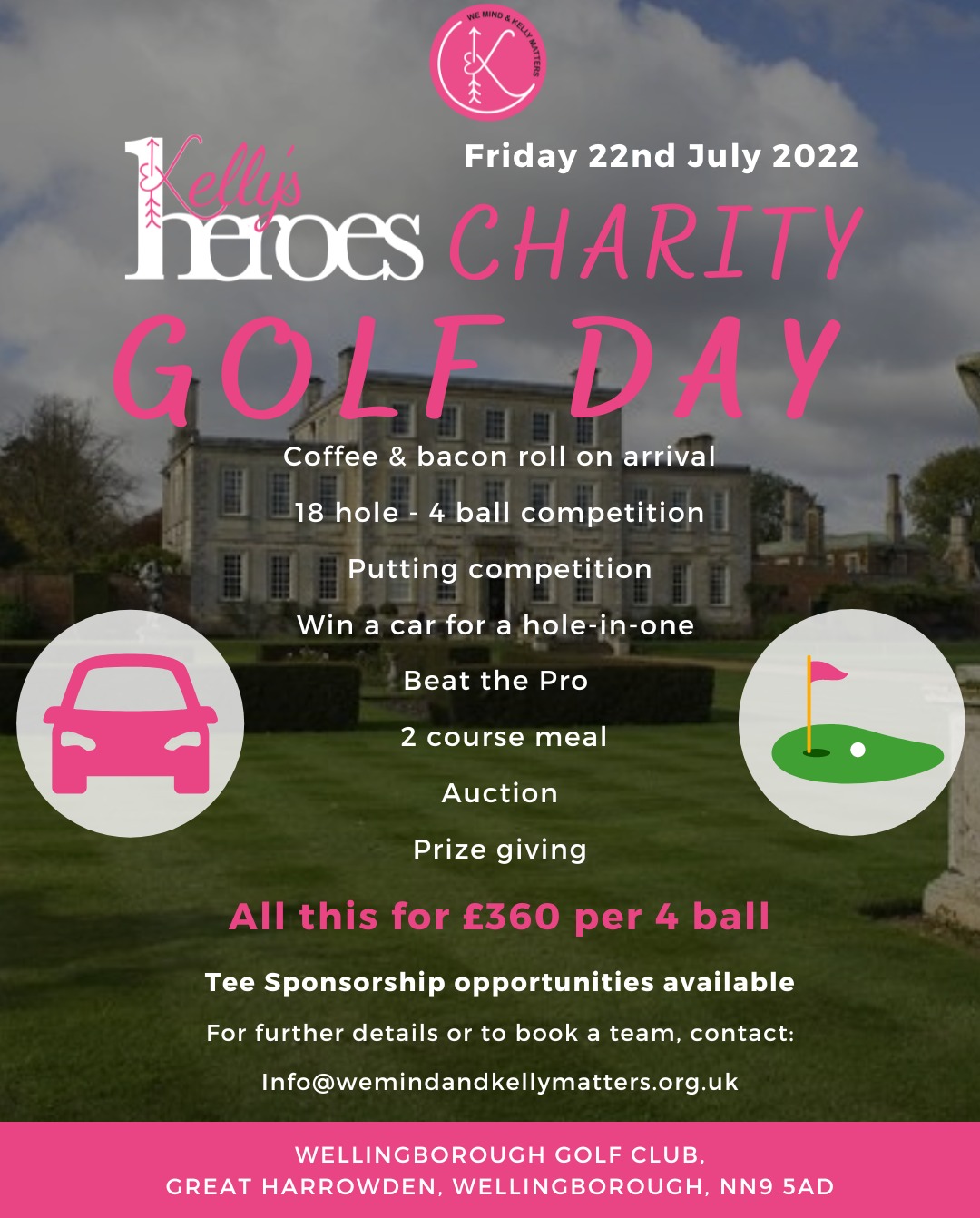 On Friday 22nd July, Kelly’s Heroes will be hosting a golf day at Wellingborough Golf Club, including 18 holes and a putting competition with a chance to win lots of prizes!